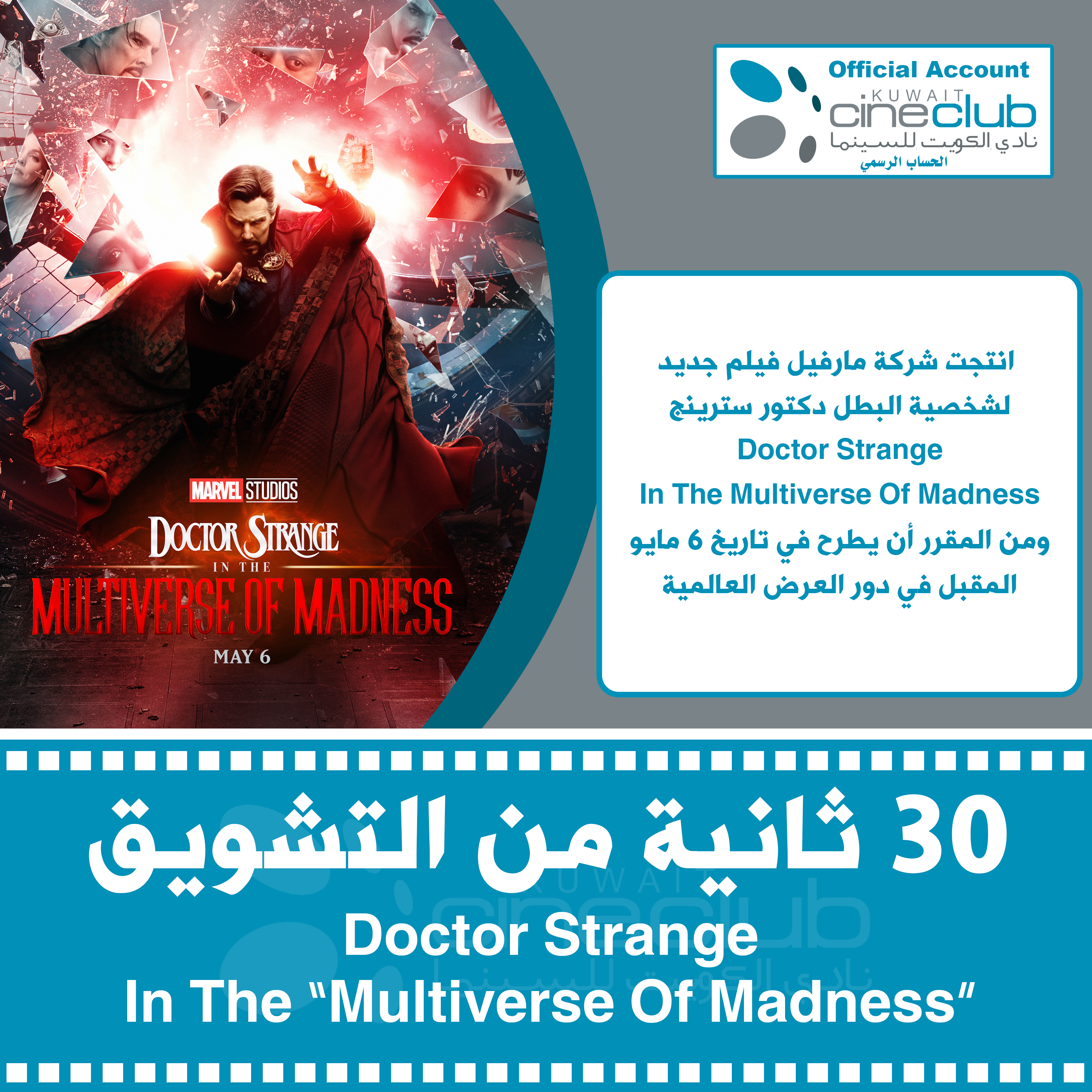 30 ثانية من التشويق Doctor Strange In The “Multiverse Of Madness” انتجت شركة مارفيل فيلم جديد لشخصية البطل دكتور سترينج Doctor Strange In The Multiverse Of Madness ومن المقرر أن يطرح في تاريخ 6 مايو المقبل في دور العرض العالمية