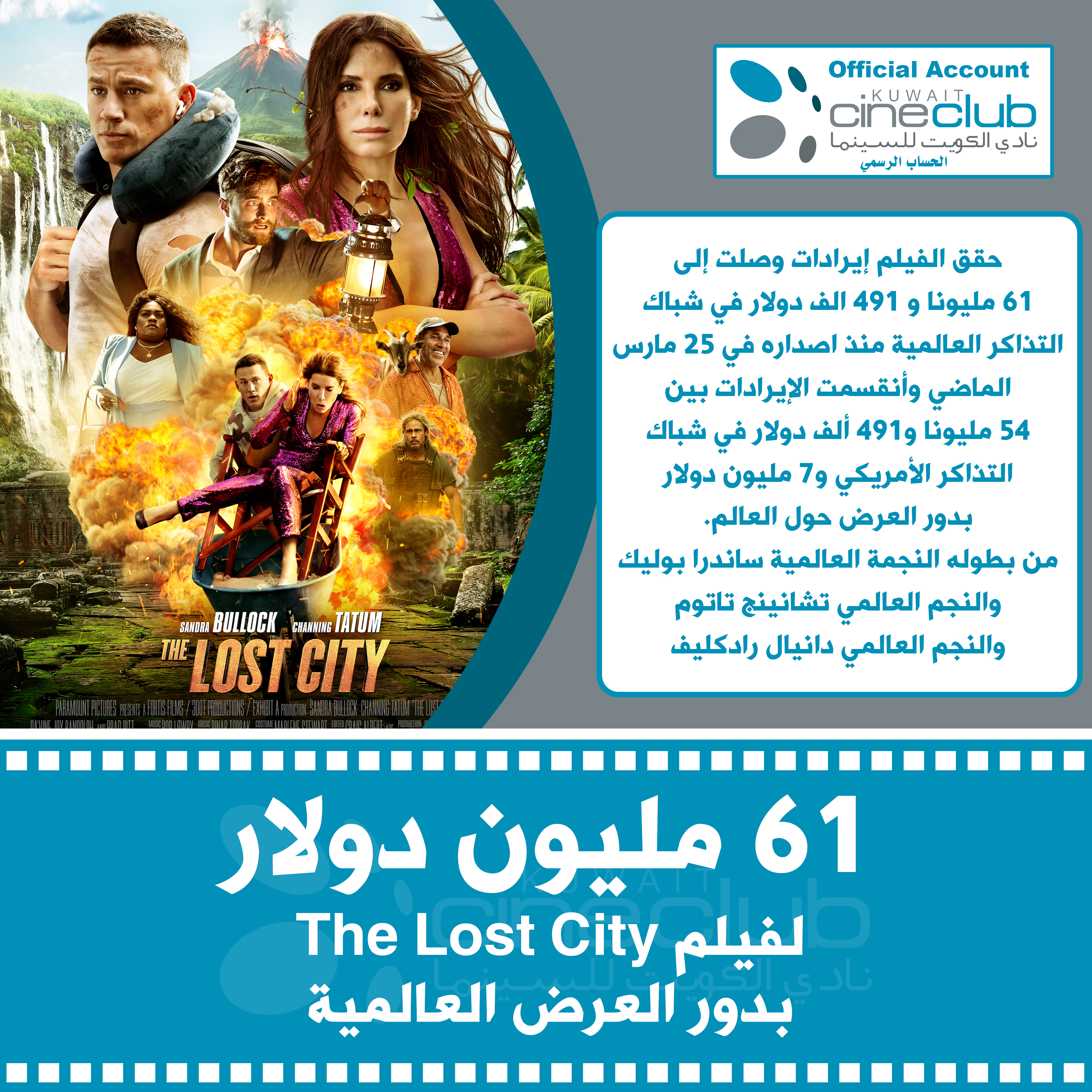 61 مليون دولار لفيلم The Lost City بدور العرض العالمية