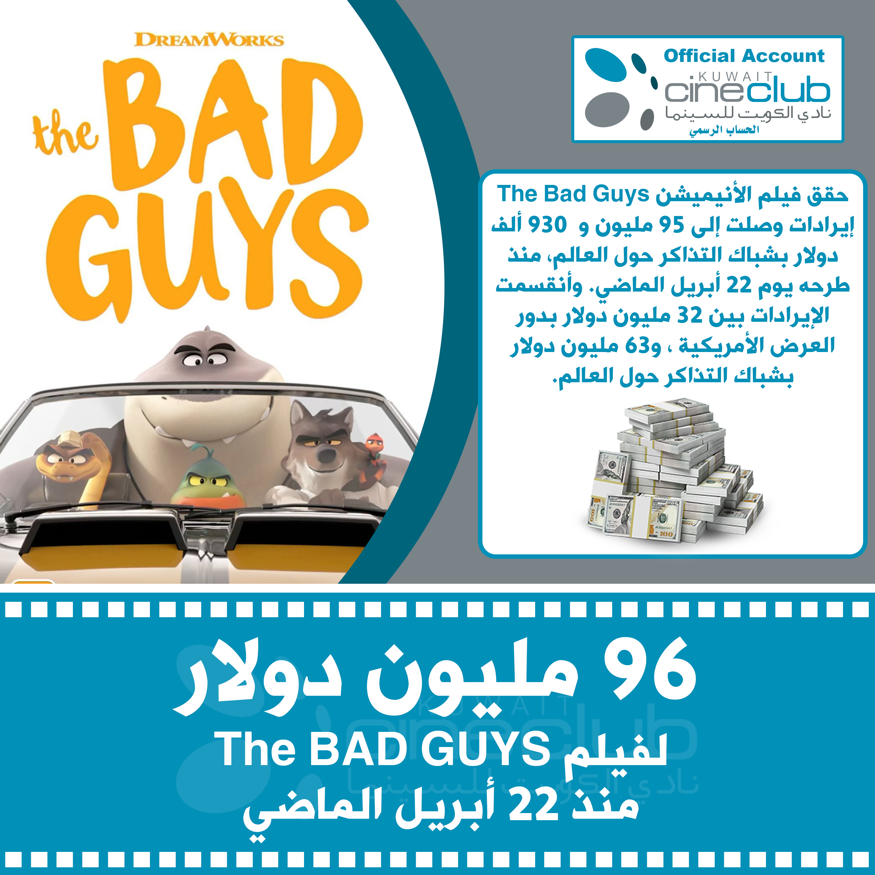 96 مليون دولار لفيلم The BAD GUYS منذ 22 أبريل الماضي