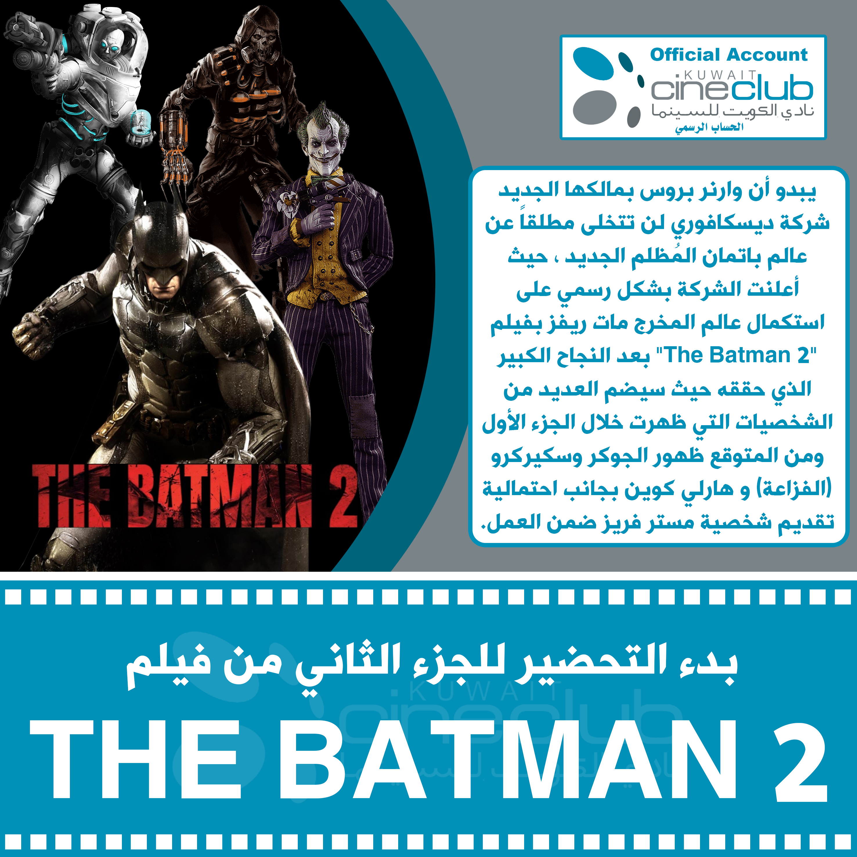يبدو أن وارنر بروس بمالكها الجديد شركة ديسكافوري لن تتخلى مطلقاً عن عالم باتمان المُظلم الجديد ، حيث أعلنت الشركة بشكل رسمي على استكمال عالم المخرج مات ريفز بفيلم "The Batman 2" بعد النجاح الكبير الذي حققه حيث سيضم العديد من الشخصيات التي ظهرت خلال الجزء الأول ومن المتوقع ظهور الجوكر وسكيركرو (الفزاعة) و هارلي كوين بجانب احتمالية تقديم شخصية مستر فريز ضمن العمل.