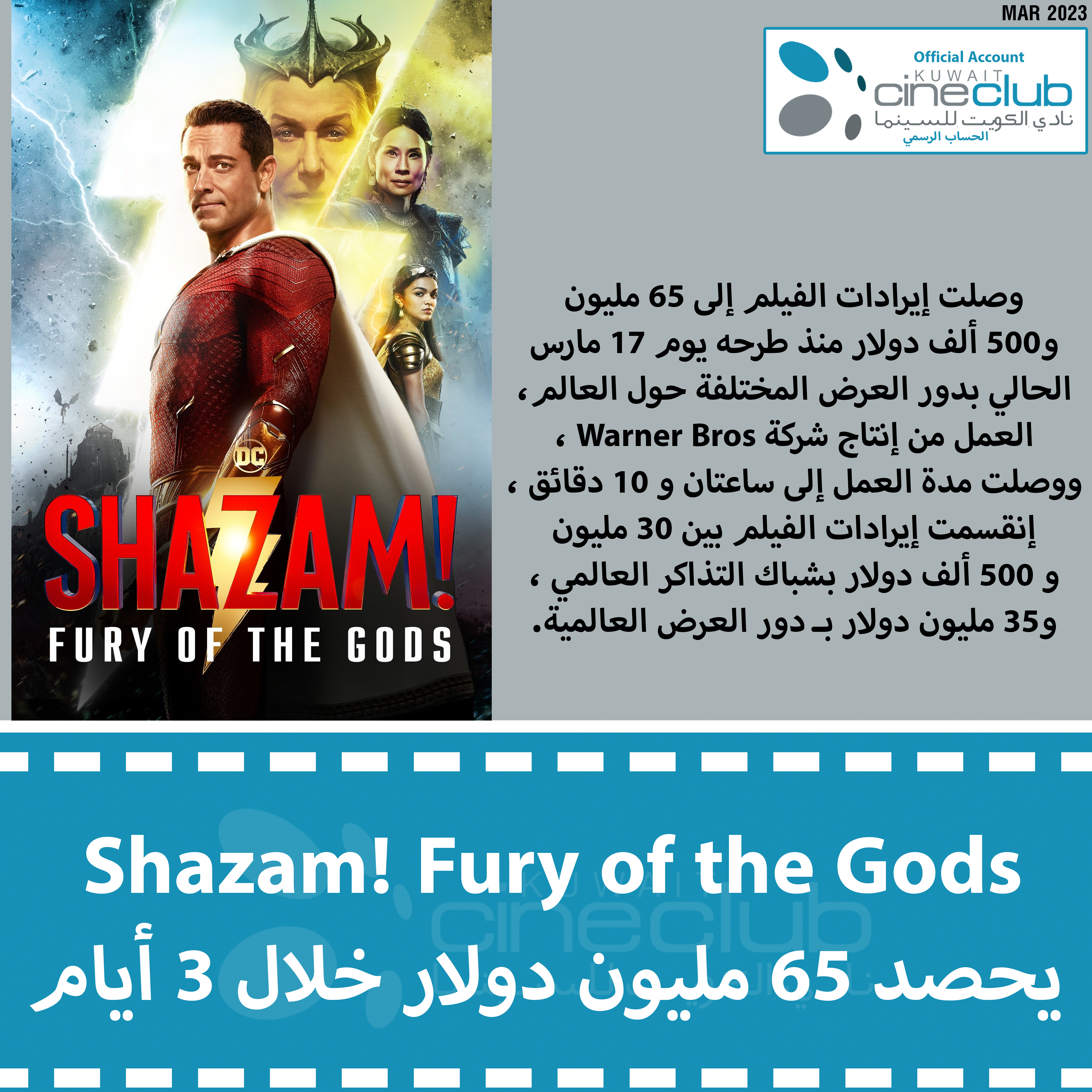 Shazam! Fury of the Gods يحصد 65 مليون دولار خلال 3 أيام