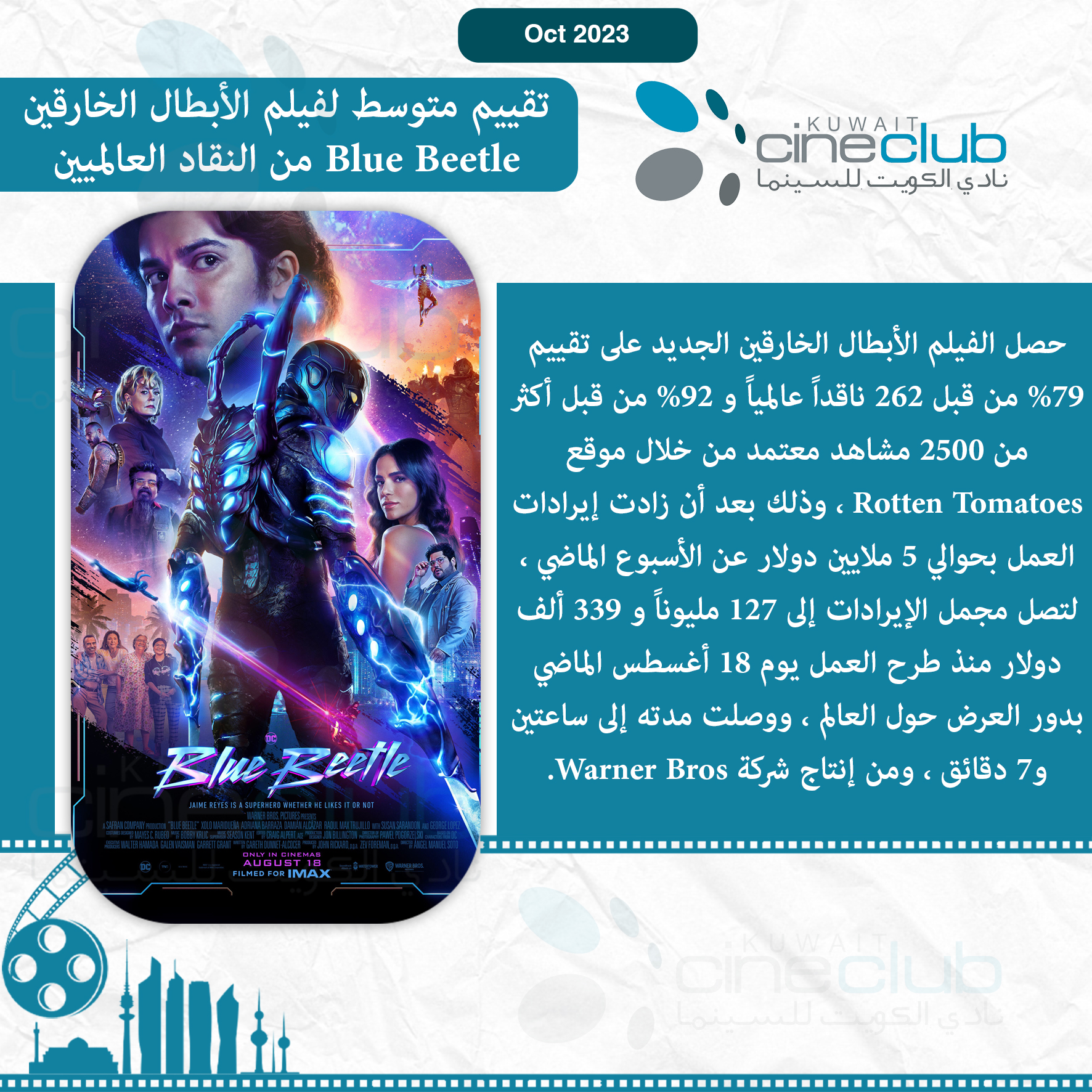 تقييم متوسط لفيلم الأبطال الخارقين Blue Beetle من النقاد العالميين