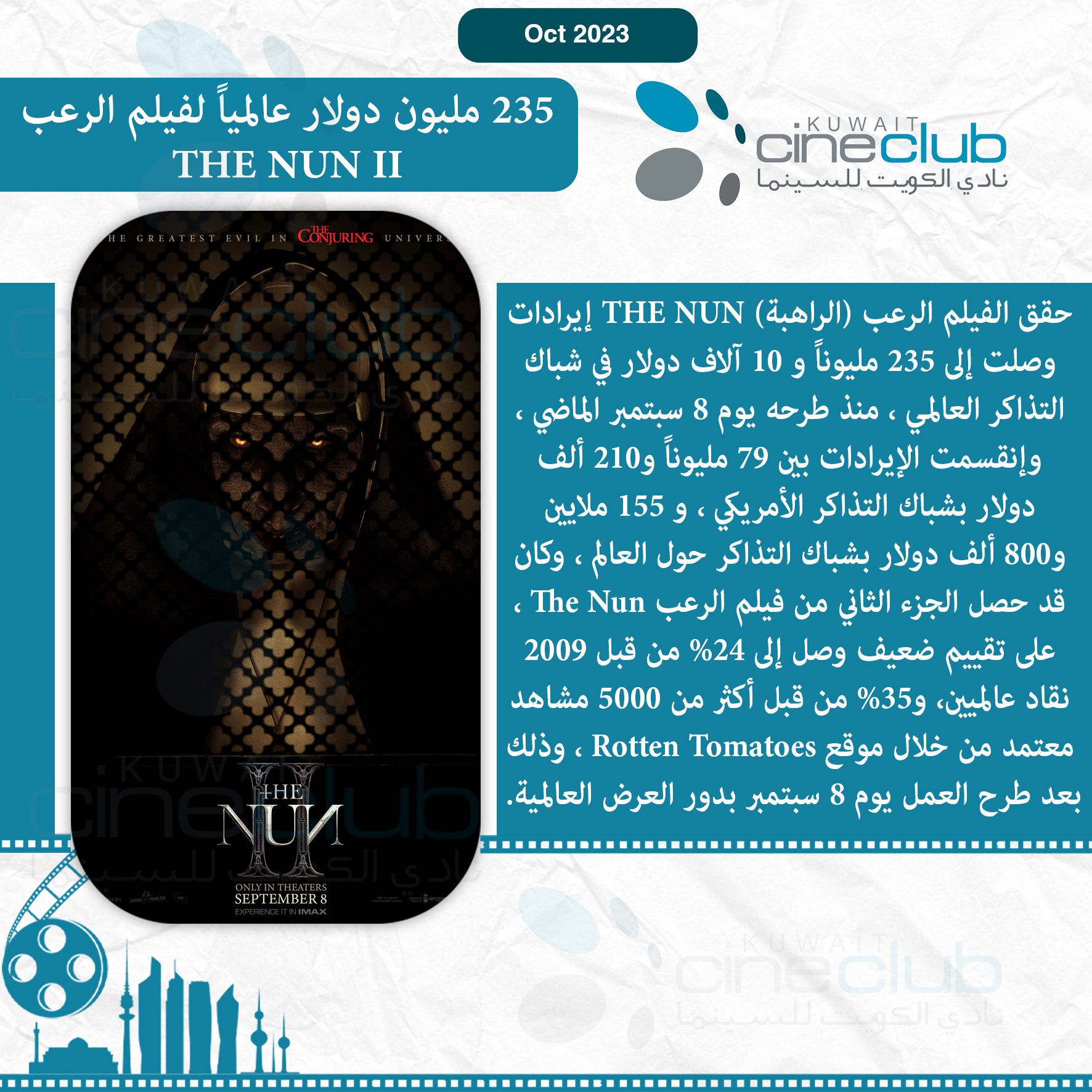 235 مليون دولار عالمياً لفيلم الرعب THE NUN II