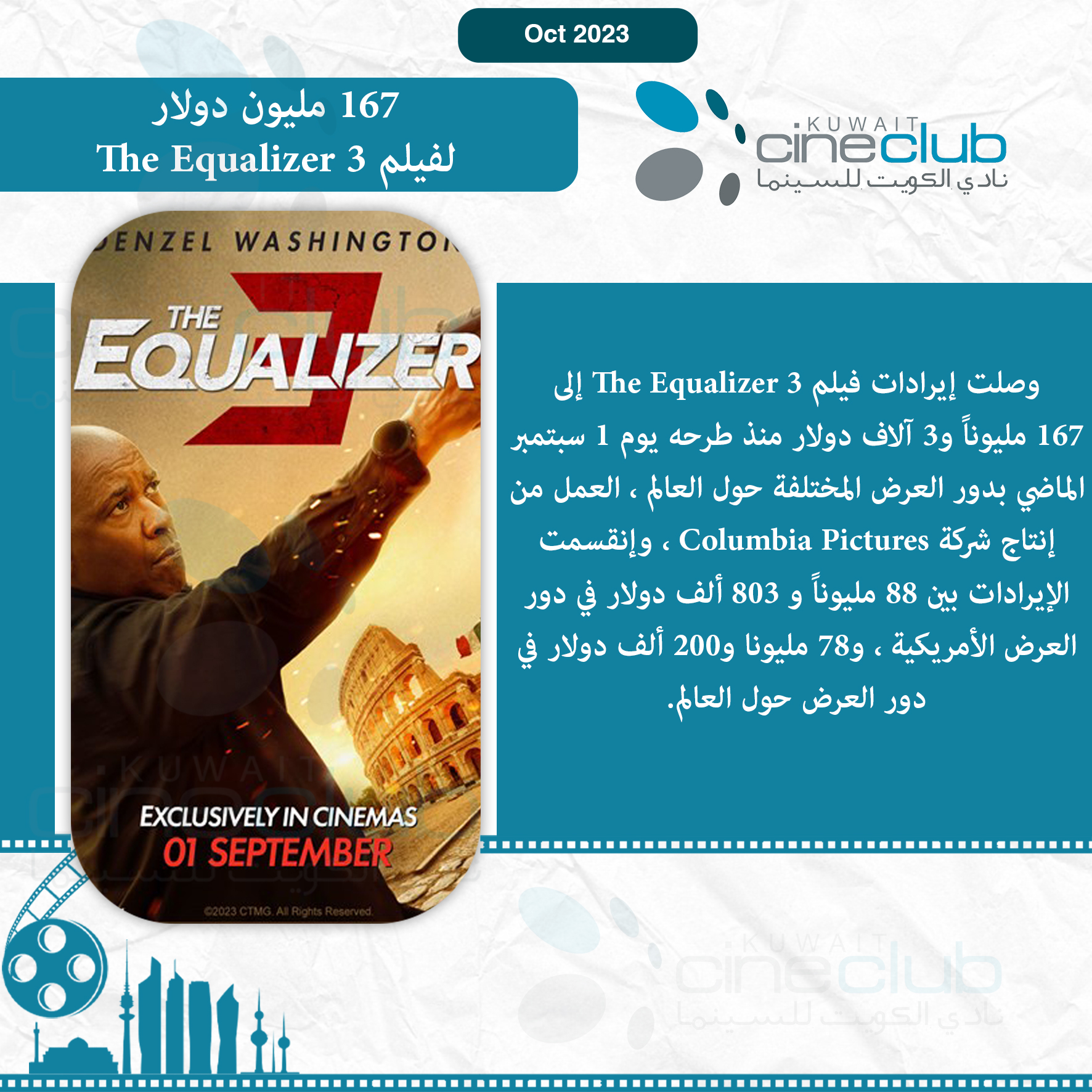 167 مليون دولار لفيلم The Equalizer 3