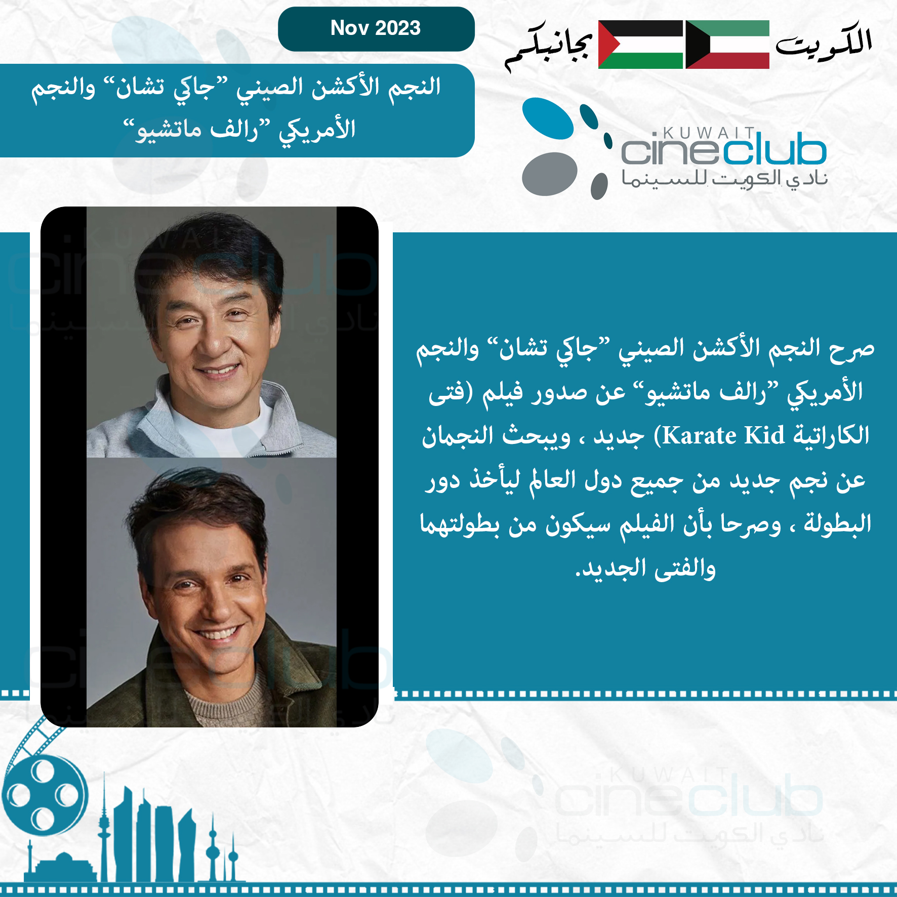 صرح النجم الأكشن الصيني ”جاكي تشان“ والنجم الأمريكي ”رالف ماتشيو“ عن صدور فيلم (فتى الكاراتية Karate Kid) جديد ، ويبحث النجمان عن نجم جديد من جميع دول العالم ليأخذ دور البطولة ، وصرحا بأن الفيلم سيكون من بطولتهما والفتى الجديد.