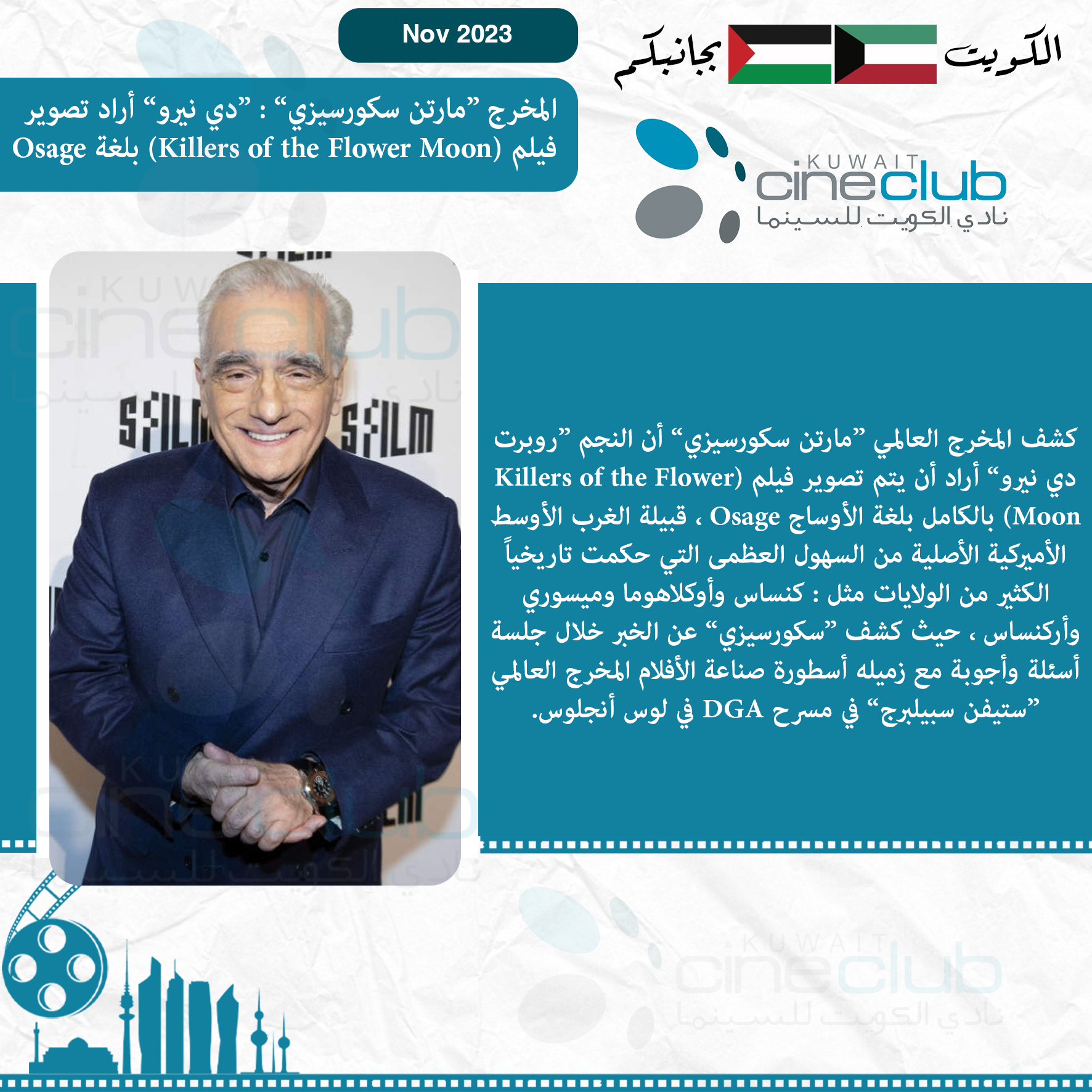 المخرج ”مارتن سكورسيزي“ : ”دي نيرو“ أراد تصوير فيلم (Killers of the Flower Moon) بلغة Osage