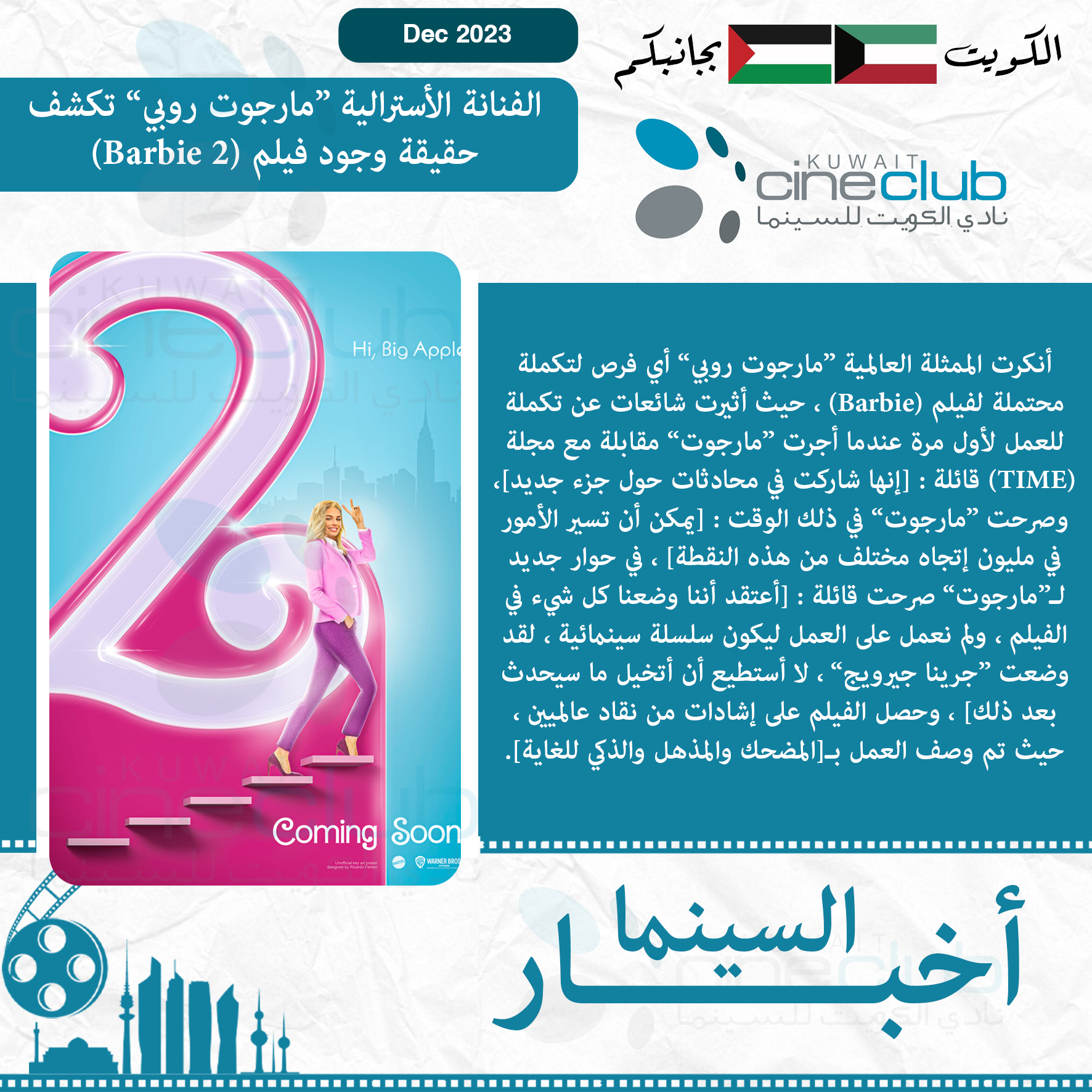 الفنانة الأسترالية ”مارجوت روبي“ تكشف حقيقة وجود فيلم (Barbie 2)